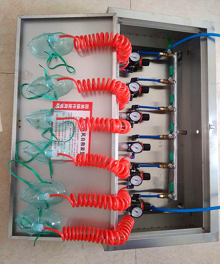 ZYJ型礦井壓風(fēng)供水自救裝置中供氣系統(tǒng)采用輕型呼吸面罩直接帶在嘴上進(jìn)行呼吸,且通過(guò)彈簧軟管連接,